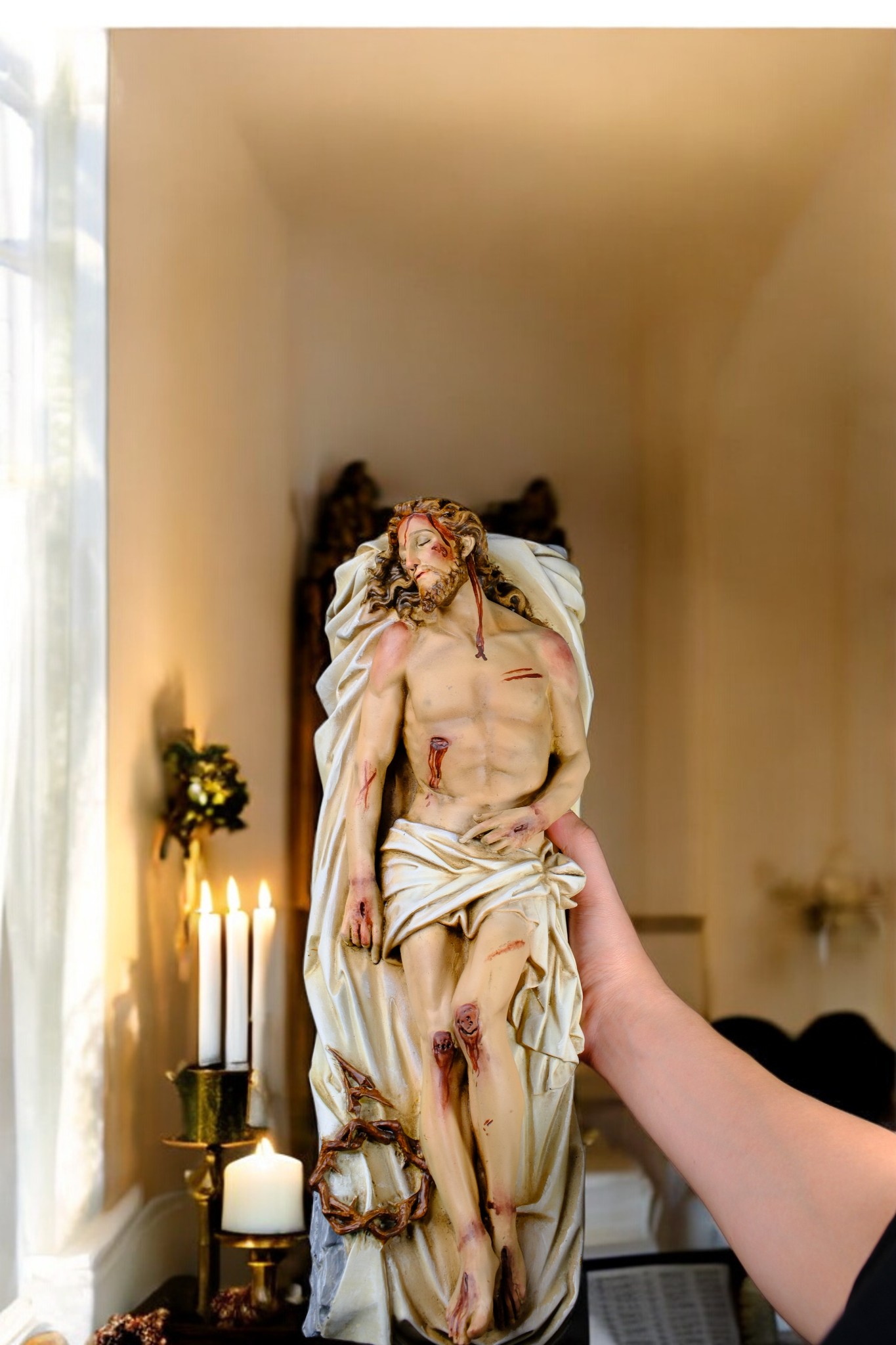 Tượng Chúa Táng Xác vẽ tay tinh xảo, hoàn thiện cao, kích thước 25cm và 40cm, phù hợp đặt bàn thờ, góc cầu nguyện hoặc làm quà tặng Công giáo.